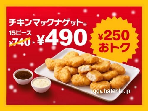 チキンナゲット好きのみなさん、こんにちは!イギーです (*'▽'*)ノ 2025年11月19日から、マクドナルドの「チキンマックナゲット 15ピース」が490円に!期間限定ソース「ガーリックバターステーキソース」「チーズフォンデュ風ソース」も登場 ♪ 「チキンマック…